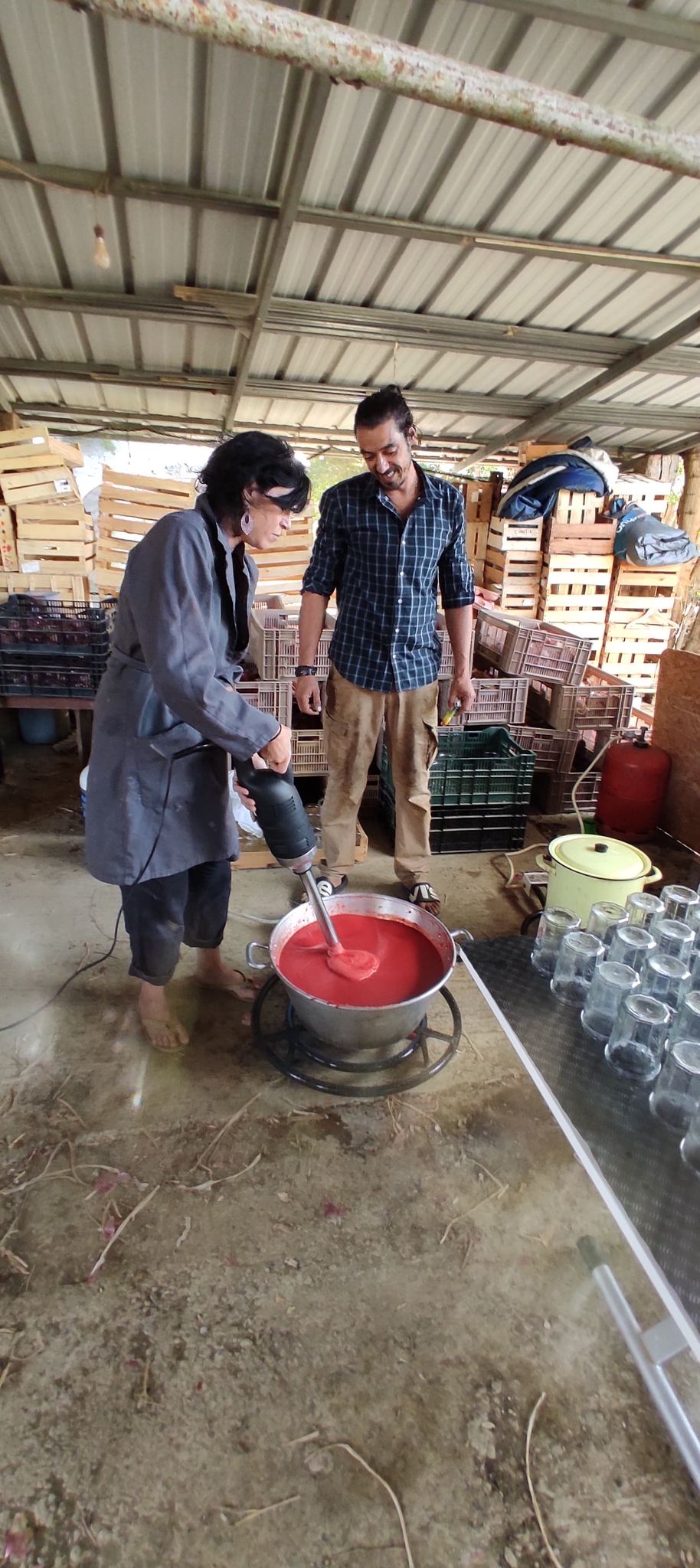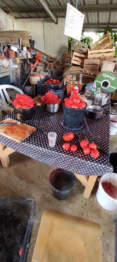 Comme chaque annĂ©e, des sessions coulis ont Ă©tĂ© organisĂ©s par l’amap de Toulouse : Ă plusieurs reprises cet Ă©tĂ©, des amapien.nes sont venu.es Ă la ferme et ont prĂ©parĂ© avec Arnaud et GaĂ«l de dĂ©licieux bocaux de coulis de tomate. Une partie de la production de tomates de cet Ă©tĂ© sera donc Ă retrouver tout au long de l’hiver dans nos paniers !