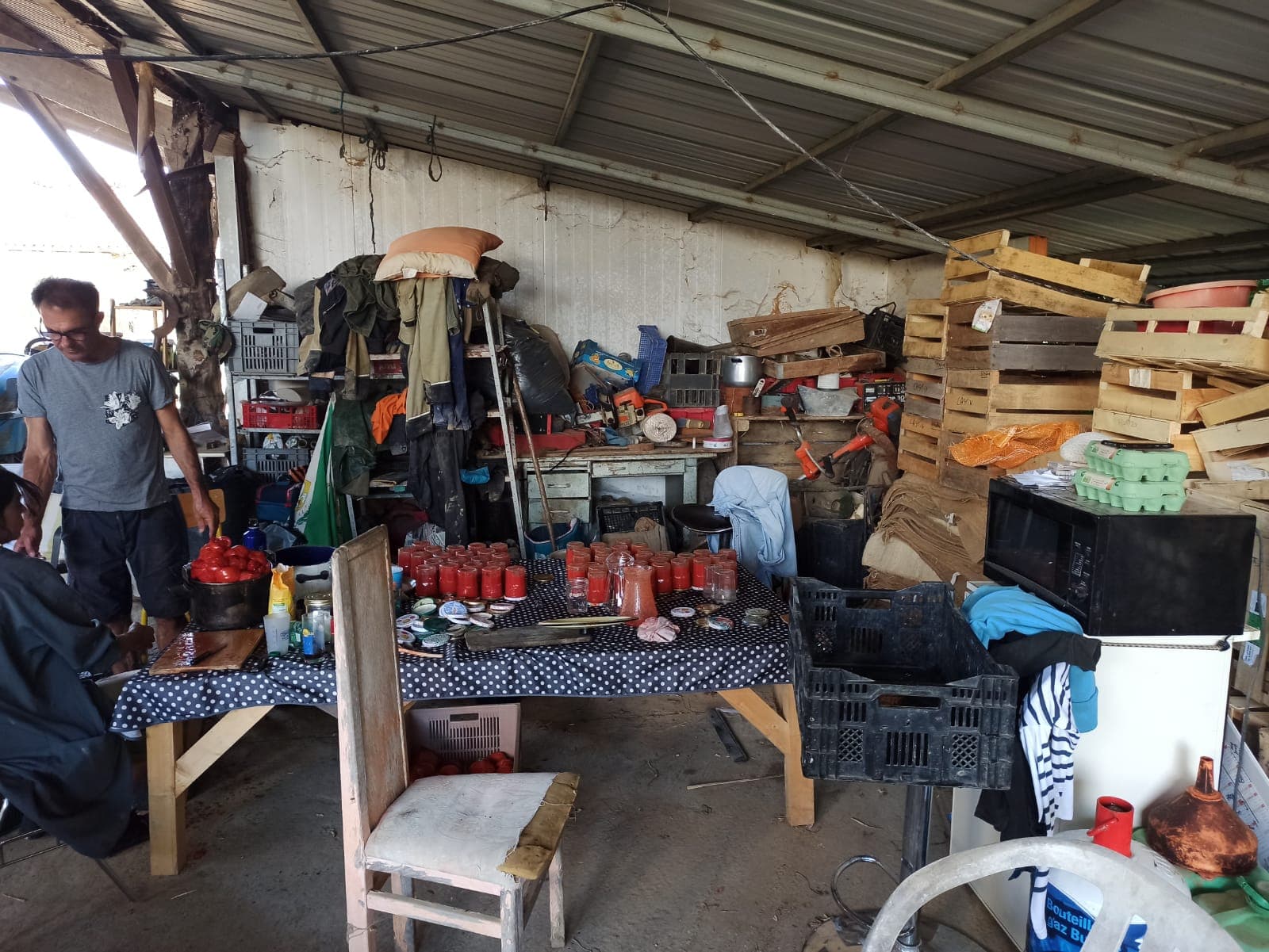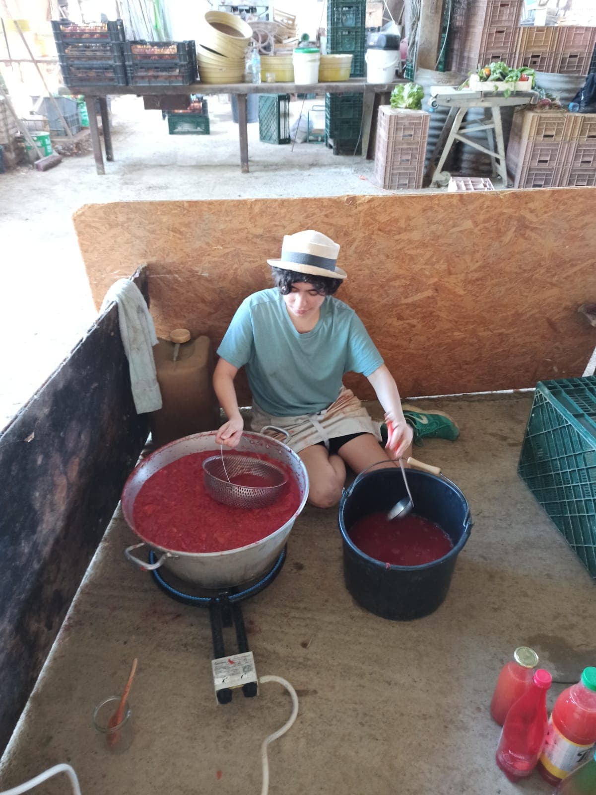De chouettes matinĂ©es dans la bonne humeur Ă la ferme, suivies, pour le repas du midi, d’auberges espagnoles et de jus de tomate !